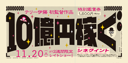 11月20日より公開の映画『10億円稼ぐ』の監督・テリー伊藤が皆様への感謝の気持ちをこめて、再び劇場にやってきます!